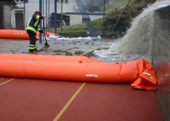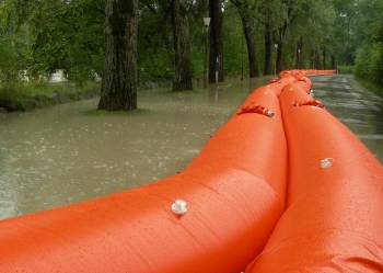 Klassische Abwehrmassnahmen wie Sandsäcke oder bauliche Massnahmen sind zeitaufwändig und kostspielig in der Umsetzung, erfordern erheblichen Ressourceneinsatz und sind ökologisch und ökonomisch oft nicht nachhaltig.